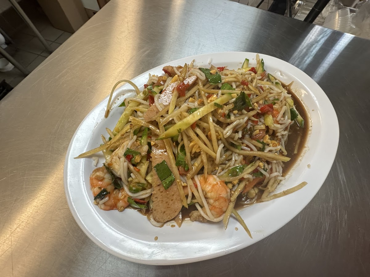 For those looking for something light and refreshing, the Laos and Thai-style papaya salad is a must-try. Known for its tangy and spicy flavors, this salad combines green papaya, herbs, and a rich dressing that leaves a lasting impression. The beauty of the salad at Ambrosia Boba Cafe is that you can choose your spice level, whether you like it mild or fiery hot,perfect for all levels of spice enthusiasts.